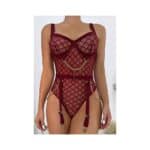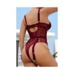 The teddy features underwire cups lined with soft mesh, providing gentle lift and shaping without sacrificing comfort. In addition, adjustable spaghetti straps and a hook-and-eye back closure ensure a secure and personalized fit.